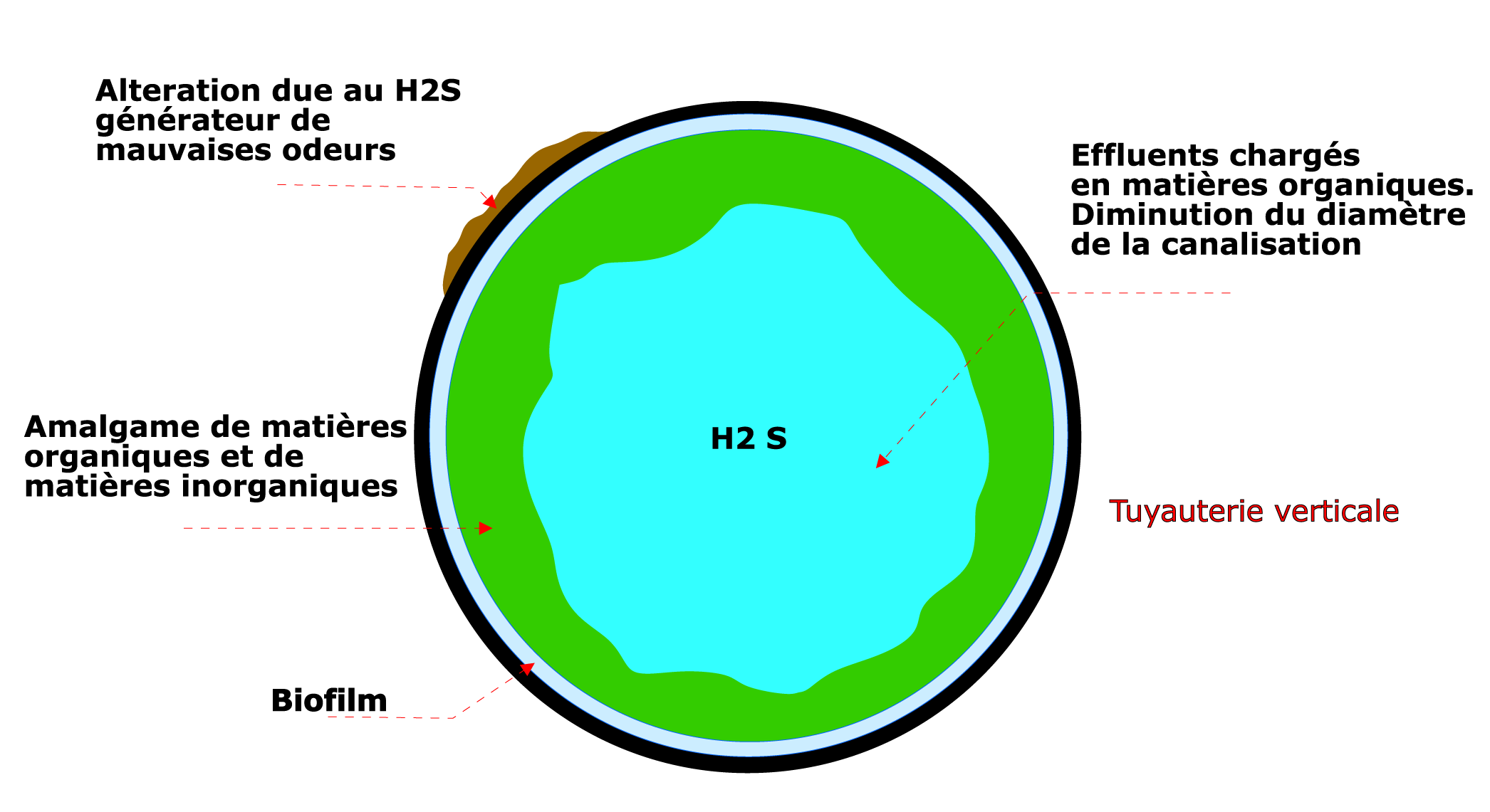 Ce sont évidemment celles qui “refont” surface malgré tous les moyens que vous mettez en oeuvre pour les éliminer … cette source de mauvaises odeurs provient de vos canalisations. Evidemment le nettoyage des siphons reste le traitement de première intention mais cela ne suffit pas. Les odeurs qui remontent des canalisations proviennent du développement bactérien qui produit l’hydrogène sulfuré (H2S) – cette odeur caractéristique d’œuf pourri … regardez :