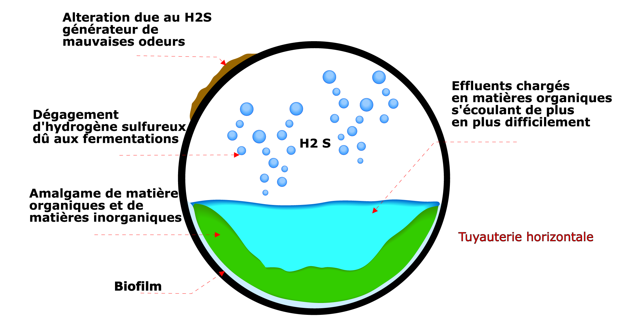 Ce sont évidemment celles qui “refont” surface malgré tous les moyens que vous mettez en oeuvre pour les éliminer … cette source de mauvaises odeurs provient de vos canalisations. Evidemment le nettoyage des siphons reste le traitement de première intention mais cela ne suffit pas. Les odeurs qui remontent des canalisations proviennent du développement bactérien qui produit l’hydrogène sulfuré (H2S) – cette odeur caractéristique d’œuf pourri … regardez :